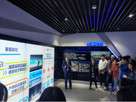 此次主题党日活动,由学院物联网应用系支部书记徐欣同志带队,组织物联网应用系和信息工程系支部师生党员代表、卓越班物应1803一行50人到“信通院”参观交流。活动分三个环节,首先是“信通院”党支部组织委员何轩带领学院师生参观物联地带·渝园区、智慧园区综合管理系统、中国智谷展厅,对园区的智能化建设及招商情况、南岸区5G产业发展情况、智能化大数据应用平台作了详细介绍。