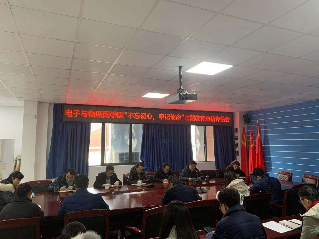1月3日下午14:30,电子与物联网公司党总支在南校区12507A会议室召开“不忘初心、牢记使命”主题教育总结评估会,公司党政办金琳主任、易圣同志主持本次评估会。电子与物联网公司党总支书记张红斌代表学院作“不忘初心、牢记使命”主题教育总结,学院共计25名党员、民主党派代表、教师及员工代表参与评估会。