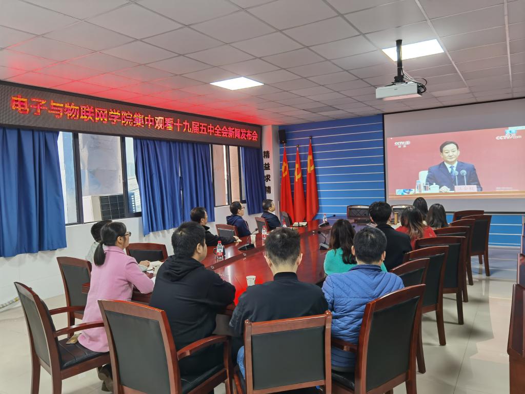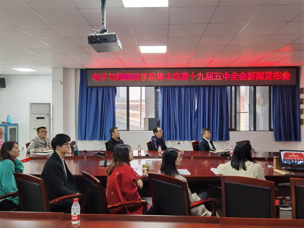 10月31日上午,电子与物联网公司党总支在12-507A会议室集中观看十九届五中全会新闻发布会,并认真学习了《中国共产党第十九届中央委员会第五次全体会议公报》和习近平总书记重要讲话精神。会议由党总支书记张红斌同志主持。