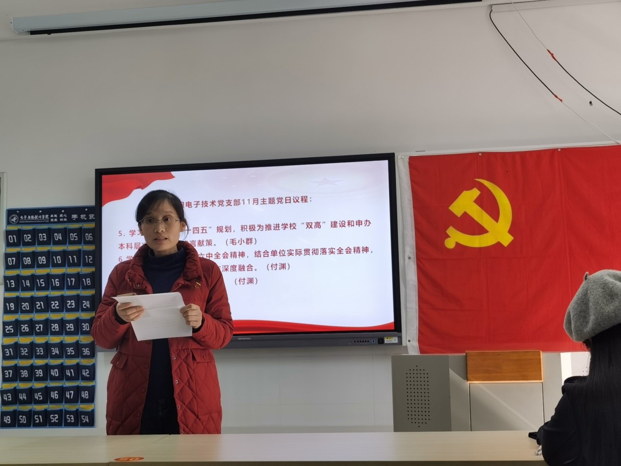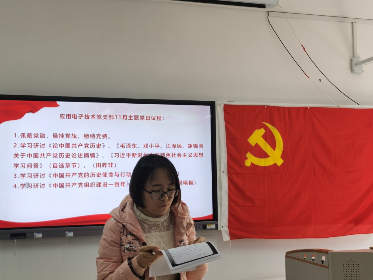 田晔非同志领学了《论中国共产党历史》《毛泽东、邓小平、江泽民、胡锦涛关于中国共产党历史论述摘编》《习近平新时代中国特色社会主义思想学习问答》,龙力源同志领学了《中国共产党的历史使命与行动价值》,周艳艳同志领学了《中国共产党组织建设一百年》,毛小群同志领学了学校“十四五”规划,积极为推进学校“双高”建设和申办本科层次职业学校建言献策,付渊同志领学党的十九届六中全会精神,结合单位实际贯彻落实全会精神,持续推进党建工作与中心工作深度融合。