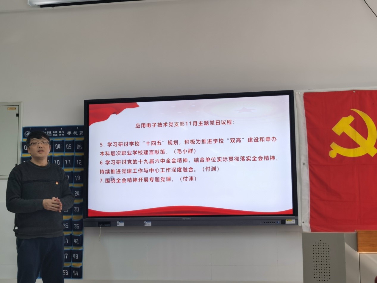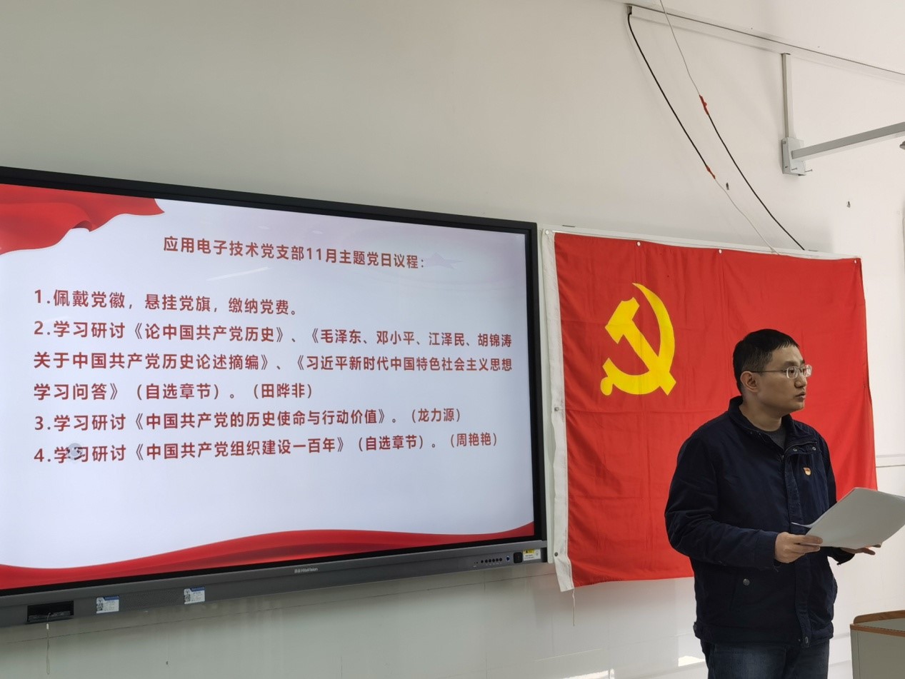 11月24日,HAHA体育集成电路系应用电子技术党支部在12-204召开11月主题党日。本次大会由付渊同志主持,支部全体党员参加,此次会议由付渊、田晔非、龙力源、周艳艳、毛小群同志领学。