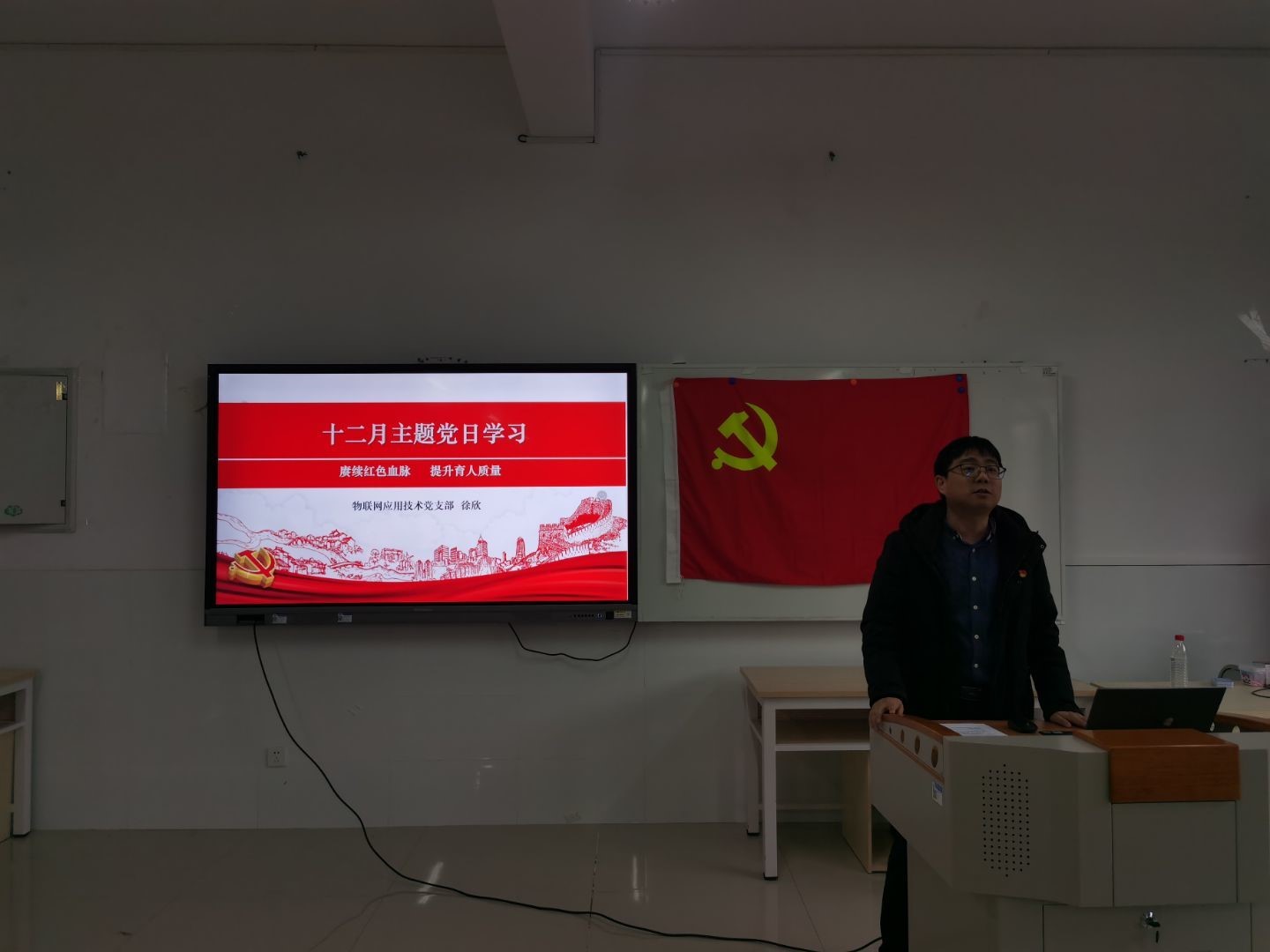 按学校组织部统一部署,HAHA体育物联网应用技术党支部于12月24日在12506开展主题为“赓续红色血脉,提升育人质量”的主题党日学习。支部书记徐欣同志主持,全体师生党员到场。