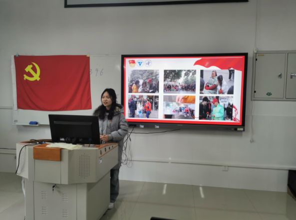会议第四项,蒋亚雯同学分享寒假期间参与合川区宝润阳光康养中心“爱心手拉手,助老献真情”志愿活动心得。作为一名预备党员,非常珍惜每一次志愿者社会实践活动,尽自己最大努力为康养中心的老人送去温暖,为他们排忧解难,用“小行动”做出“大温暖”,发扬敬老爱老的中华传统美德,希望通过这次实践活动能在思想上有新感悟、在政治上有新升华。