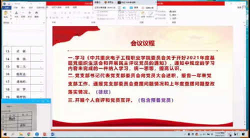 会议第三项,正式党员进行支部工作评议,经民主评议,对支部的评议均为:优秀。正式党员进行党员评议,按照规定的名额,以无记名投票的形式线上推选优秀党员。