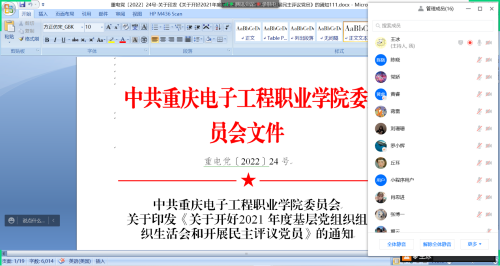 组织生活会结束后,王冰同志宣读了“同心‘战疫’:让党旗在重电疫情防控的战场上高高飘扬-致全校基层党组织和全体党员的一封信”,并强调“疫情就是命令,防控就是责任”,在疫情防控的紧要关头,支部全体师生党员要发挥党员的先锋模范作用,带头维护学校线上教学秩序,认真配合做好各项防疫检查工作,众志成城战疫情,戮力同心度难关!