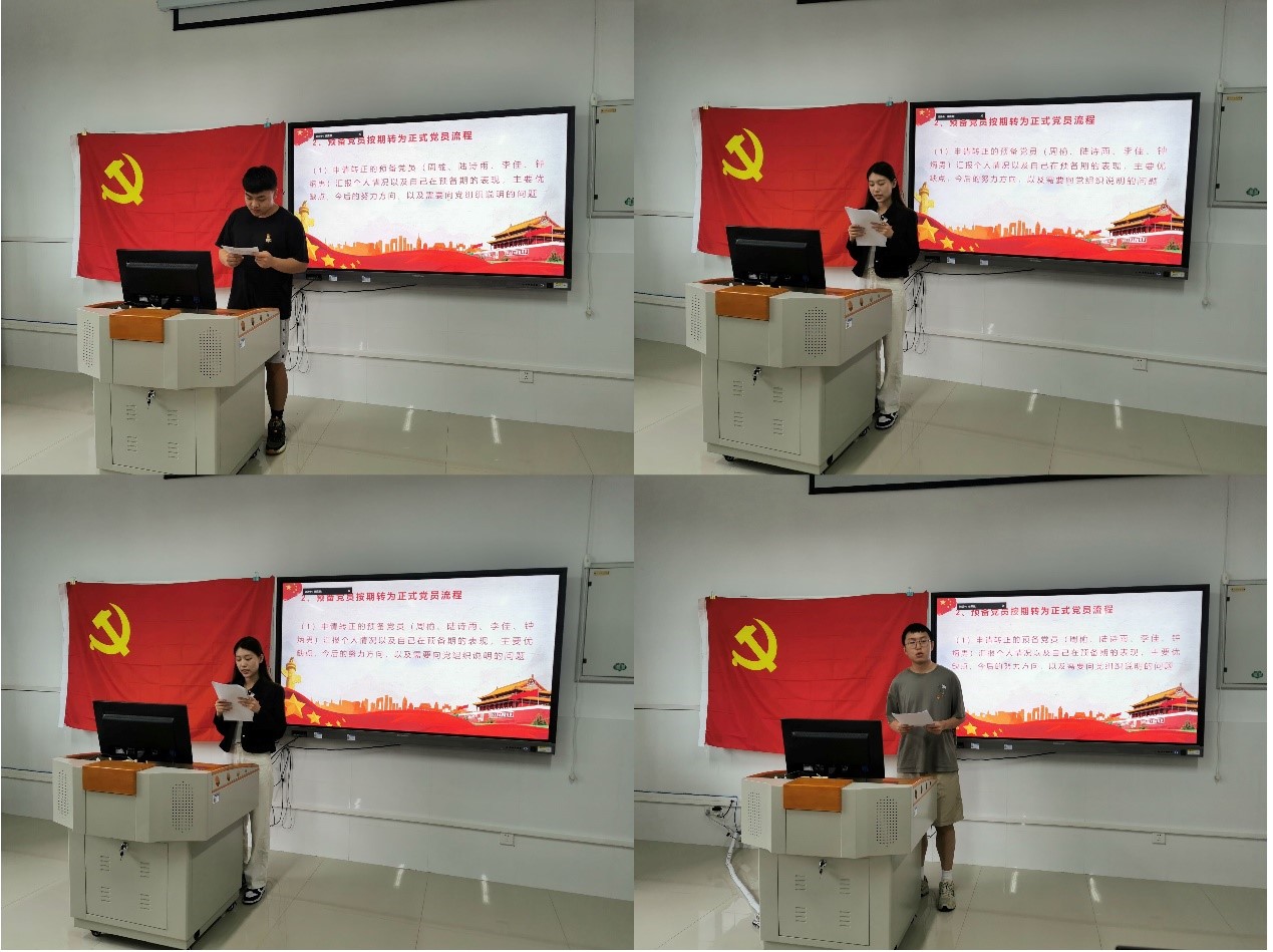 集中学习后,大会讨论了陆诗雨、李佳、钟炳男和周榆4名预备党员按期转为正式党员事宜。首先,4名申请转正的预备党员分别宣读了《预备党员转正申请书》,汇报自己的思想、工作、学习情况。随后,入党介绍人逐一对4名同志在加入中共预备党员后的表现情况进行总结评价,其他党员也纷纷发表意见,认为4名预备党员同志在预备期间,能以党员标准严格要求自己,刻苦钻研专业知识,已具备了成为正式党员的条件。最后,参会正式党员对4名同志能否按期转正进行投票表决,全票一致通过如期转为正式党员。