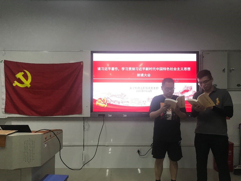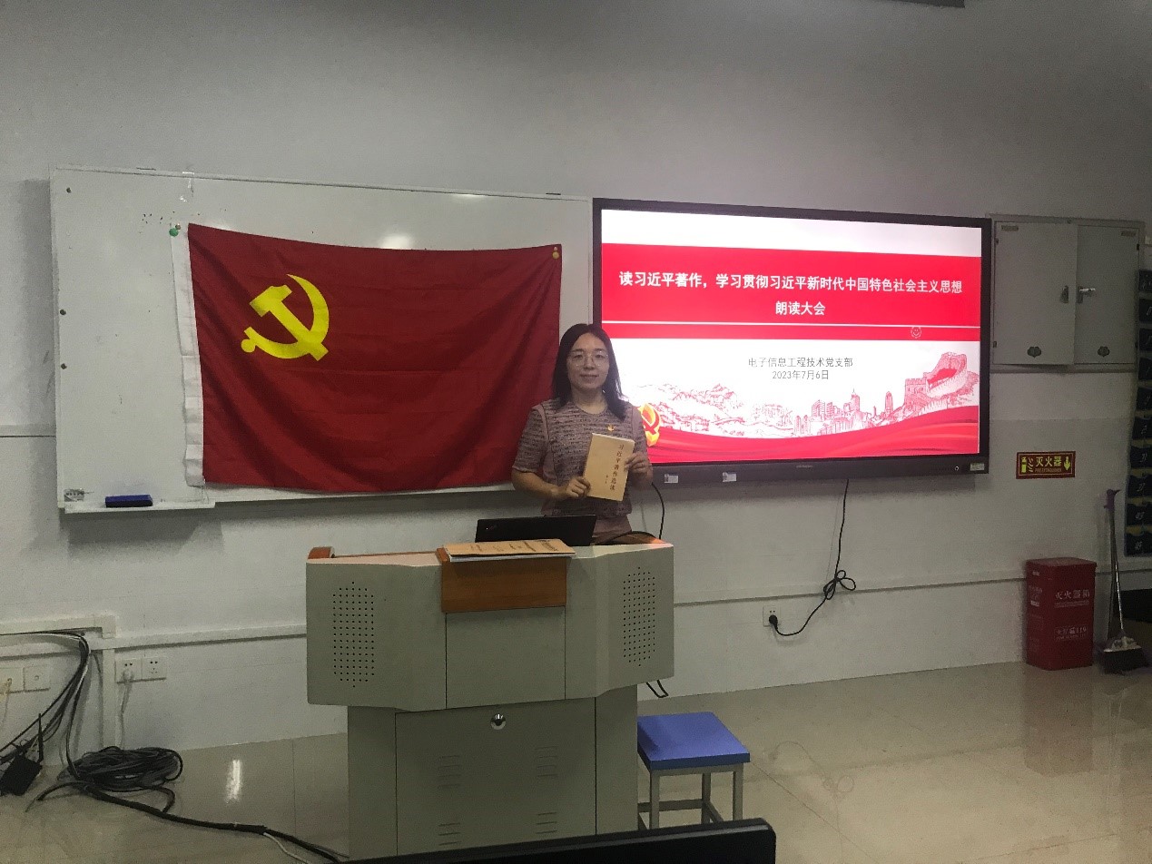 7月6日,电子信息工程技术党支部为深入学习贯彻习近平总书记关于主题教育系列重要讲话和重要指示批示精神,开展了“读习近平著作,学习贯彻习近平新时代中国特色社会主义思想”朗读大会。
