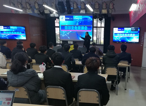 卓越班的同学们也把自身的一些想法跟海尔公司代表进行了充分的交流沟通,他们纷纷表示这次宣讲会有所获、有所得,对海尔的企业文化有了较深的理解和领悟。通过这次会议,员工近距离地接触企业,让企业的员工为同学授课,为深化校企合作践行。