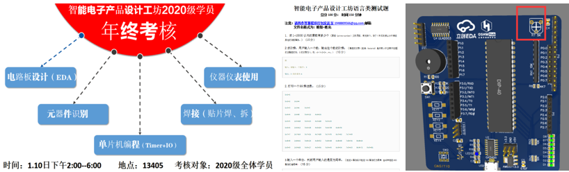 “学长助学”系列活动由智能终端技术与应用专业、重电-立创EDA联合实验室和智能产品设计工坊共同举办,本学期共计完成10余次专项技术培训,以及长期的一对一帮扶活动。为检验学员们的学习效果,于1月10日下午在实验室13405和12305举行了年终考核。