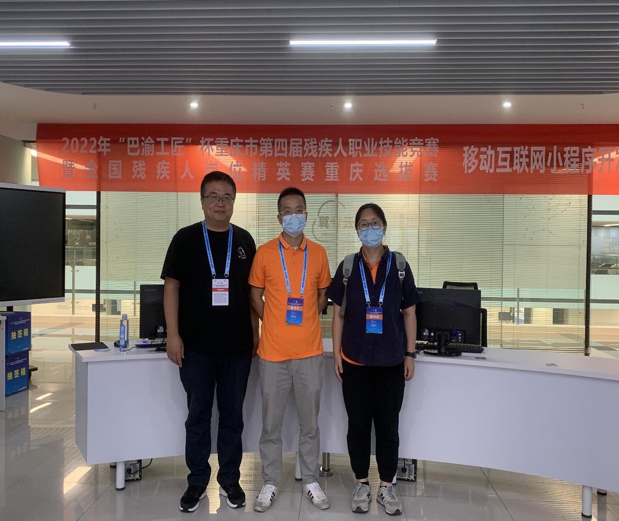 9月27日,由重庆市残联、市人力社保局联合主办的2022“巴渝工匠”杯重庆市第四届残疾人职业技能竞赛暨全国残疾人岗位精英赛重庆选拔赛在重庆市巴南区职业技能公共实训中心举办,竞赛开设8个项目,共有41个区县近160名选手参赛。公司作为计算机程序设计员(移动互联网小程序开发)、物联网安装调试员(物联网开发与应用)两个赛项技术支持单位,选派了武新博士、高超博士分别任裁判长,周丽娟、李靖老师任裁判员。赛前,武新博士作为裁判代表致宣誓词,表示坚决维护比赛的公平公正。本次大赛每个赛项时长三个小时,秉持着人文主义精神,裁判们耐心为参赛选手讲解比赛任务要求,协助选手解决操作障碍,受主办单位领导、参赛选手和家长一致好评。