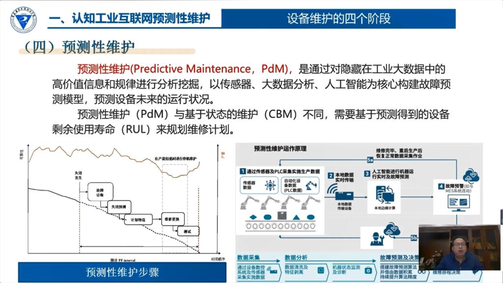 11月24日,HAHA体育杜雪飞教授级高级工程师参与线上交流,分享了工业互联网预测性维护,讲解了工业互联网预测性维护基本概念和分类、常用预测性维护方法、预测性维护政策和标准,介绍了工业互联网预测性维护系统工作流程、架构、设备与功能识别、风险评估方法及技术等。借用阈值故障检测、灰色故障预测等典型案例,阐述了设备故障分析、预测系统建模和实现。