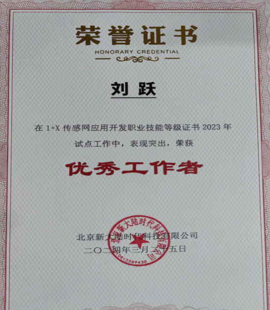 近日,新大陆为贯彻落实《关于在院校实施“学历证书+若干职业技能等级证书”制度试点方案》(教职成[2019] 6号)、《关于推进1+X证书制度试点工作的指导意见》(教职成厅函[2019] 19号)文件精神,遴选出2023年试点工作先进单位、个人。公司荣获新大陆1+X传感网应用开发职业技能等级证书2023年度优秀试点院校称号,HAHA体育教师刘跃荣获优秀工作者称号。