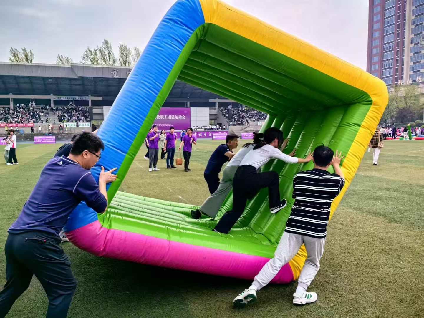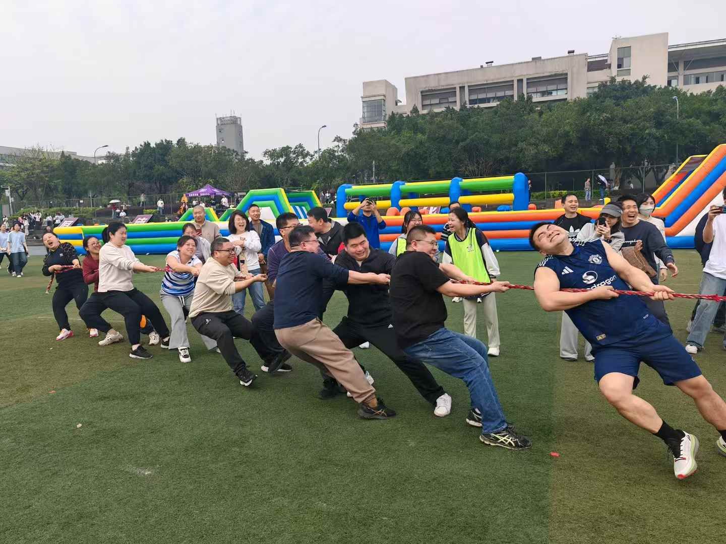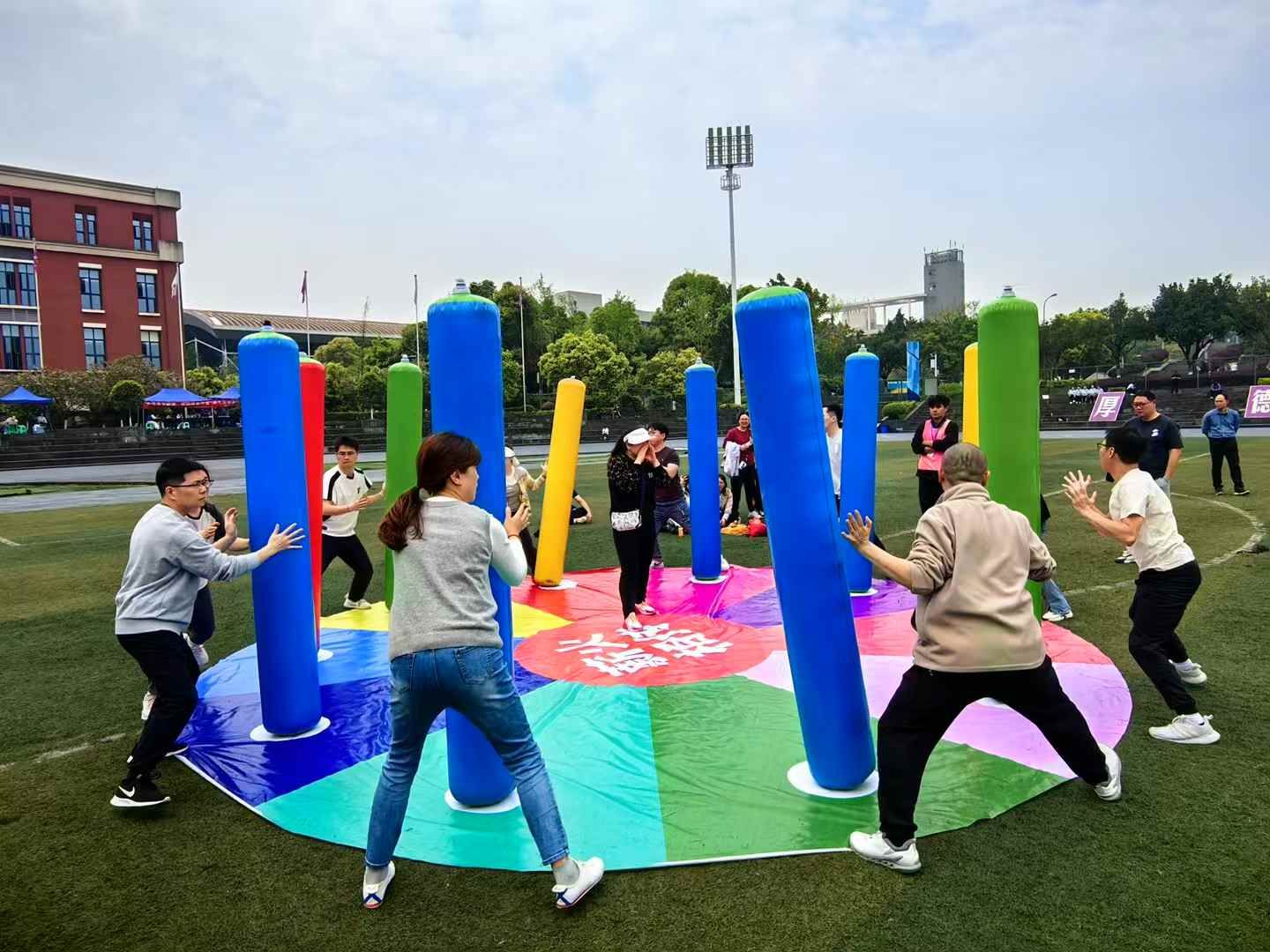 本次团建运动会设置花样拔河、U型超级冲关、鸿运当头、不倒森林、新时代巨轮共5个项目,学院共派出40余名教师参与。赛场上,公司教师一改往日沉稳形象,化身为活力四射的运动员,挥洒汗水,展现拼搏风采。教师们默契配合、齐心协力,比拼体力的同时,发挥聪明才智及团队精神,巧妙应对挑战,顺利完成全部项目。赛场下,师生奋力助威,亲切互动,分享成功喜悦。