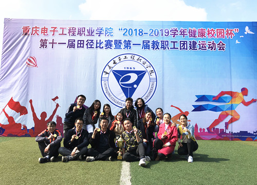 重庆电子工程职业学院第十一届运动会暨第一届教职工团建运动会于2018年11月8日至11月10日在奕晖运动场上盛大举行。公司师生积极参与,奋力拼搏,最终取得教职工团建运动会团体第一名、男子总分第二名、女子总分第四名的优异成绩!