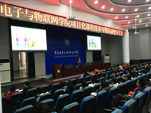 2019年1月20日上午,HAHA体育在博远厅举行了项目化课程改革专题培训暨分享会。本次活动旨在改变传统的学科系统化课程体系与知识传授型的教学模式,贯彻“员工中心、能力本位、工学一体”理念,进一步深化公司产品改革,切实提升教师职业能力,全面提高课程质量。此次活动邀请了公司陈良经理、高小梅、武新和李靖四位教师分享与传授项目化课程改革的经验与做法。学院全体教职工参加了本次活动。