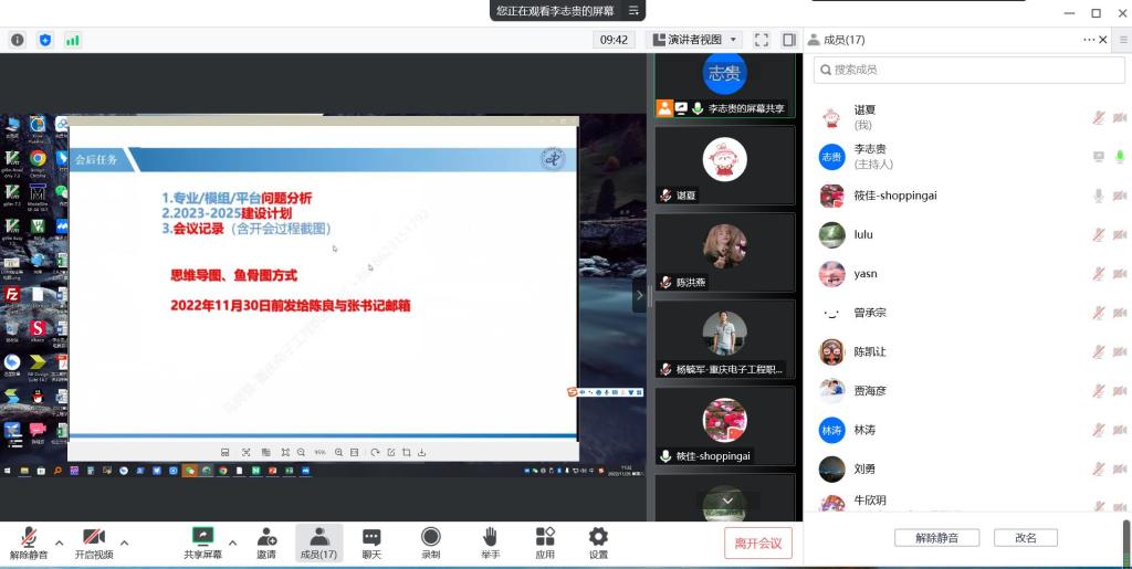 研讨会上,李志贵主任首先对收集的全体教师关于专业与模组在建设与发展中存在的问题进行了梳理,归纳为专业发展、团队建设、课程设置、员工发展、教研成果、科研成果、工作安排和资源利用等八个方面,并一一进行了分析与解答。期间,每位教师就自己所关心的专业发展、模组定位、课程设置、课程建设、科研教研等方面的问题和自己在专业与模组中未来的建设规划进行了发言和交流。