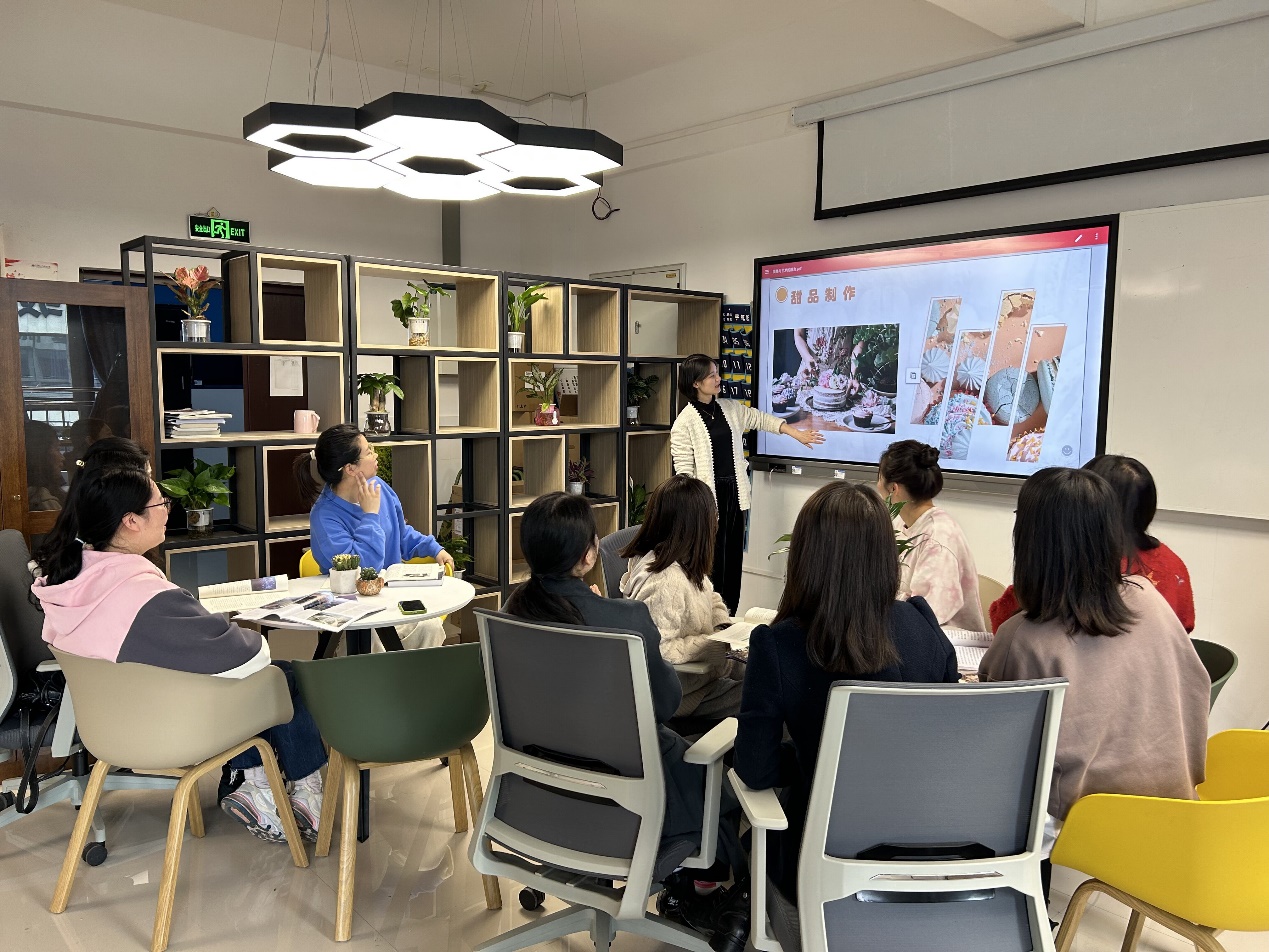 活动伊始,女职工们在学院图书阅览室开展了书籍阅读和读书分享活动,交流对所读书籍的体会,分享对艺术和美的感受。通过读书活动,全体老师在阅读中开阔视野、增长知识、陶冶情操、增进交流,为自我身心的和谐提供源源不竭的精神动力。随后大家跟随烘焙老师体验蛋糕和青团的制作,大家聚精会神地聆听烘焙老师的讲解,在老师的指导下,大家互相配合协作,完成了精美的蛋糕作品。