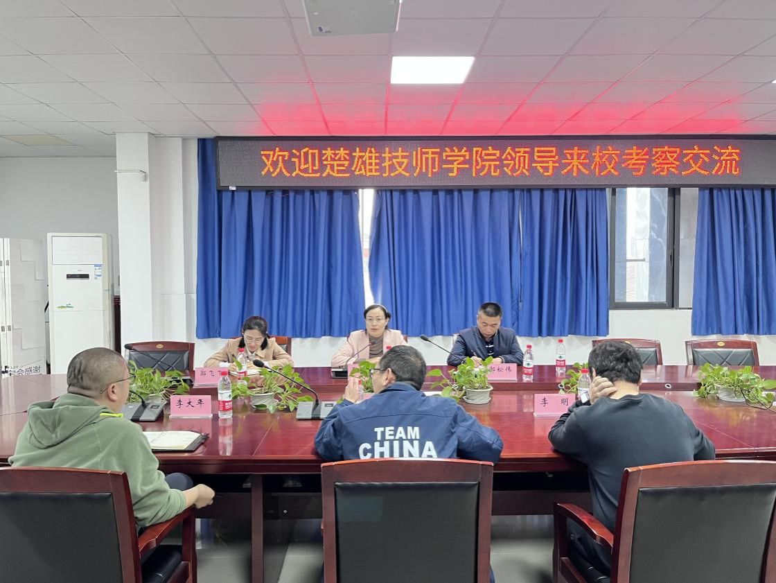 陈良首先对楚雄技师学院的来访表示热烈欢迎,对学校在团队、办学、人才培养、专业建设等方面进行了概述,并介绍了“双高”建设5年来学院在教学、科研、竞赛等方面取得突出成绩。张艳丽具体介绍了楚雄技师学院基本情况后,双方就“双高”建设、人才引进、大师工作室建设、校企合作、技能竞赛等方面进行了广泛深入的交流。