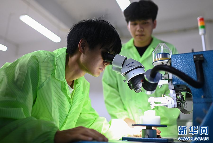 员工正在进行芯片引线键合操作。新华网发(孙凯芳 摄)