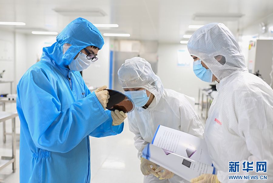 图为员工们在观察晶圆。新华网发(孙凯芳 摄)