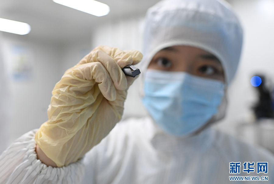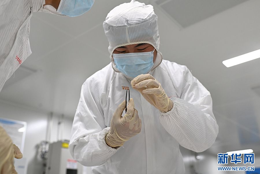 图为员工夹取芯片。新华网发(孙凯芳 摄)