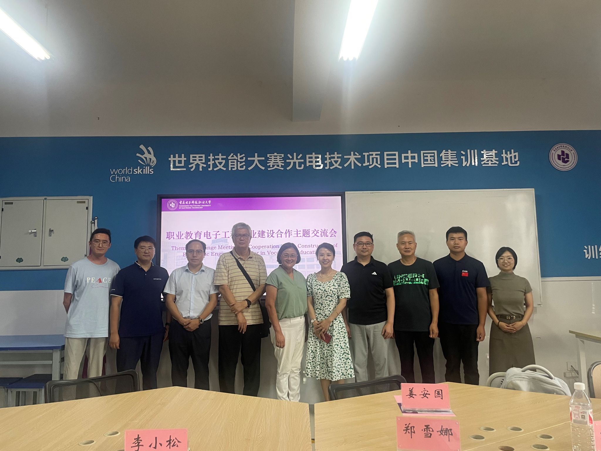 随后,在世界技能大赛光电技术项目主基地开展了座谈会。会议由熊德明主持。会上,刘影首先致以热情洋溢的欢迎辞,不仅概述了公司的教育概况、国际化发展战略,还回顾了近年来与新加坡工艺教育学院间日益紧密的友好交流,并表达了深化合作、共创未来的强烈愿望。熊德明聚焦专业建设,提议以光电技术赛项为纽带,开启两校间师生培训与国际交流的崭新篇章。