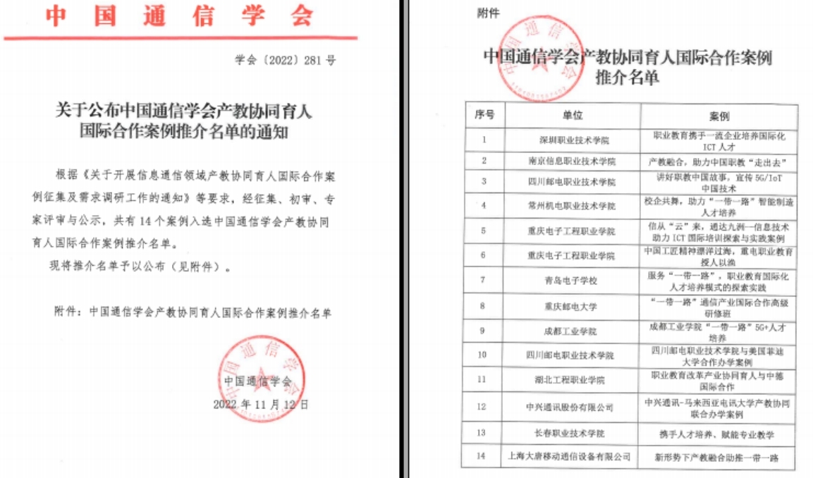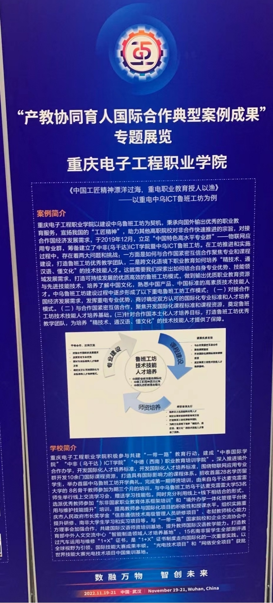 本次能够入选“中国通信学会产教协同育人国际合作案例推介名单”并进行现场展示,向全体业界展示了重庆电子工程职业学院中乌鲁班工坊的技术技能人才培养模式,证明了重电中乌鲁班工坊在深入推进境外合作办学,中向国外输出优秀的职业教育服务,宣扬我国的“工匠精神”做出了积极的贡献,接下来重电中乌鲁班工坊将继续稳步推进和扎实实施。