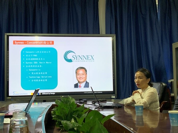 2019年5月21日下午,Concentrix聚盟科技公司大中华区西南区负责人杨珊到HAHA体育就电子产品营销与服务专业洽谈校企合作。电子与物联网公司党总支书记张红斌、信息服务系主任刘睿强、电销专业主任周言敏及骨干教师王君、周艳艳等参加了此次座谈。