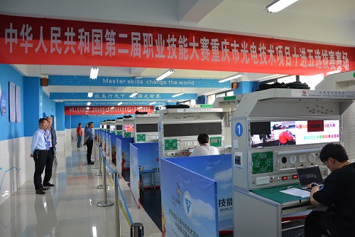 “孟夏之日,天地始交,万物并秀”,在这绿意盎然的季节里,公司世界技能大赛光电技术项目重庆市集训基地(以下简称“光电基地”)于5月12日至14日,举办中华人民共和国第二届职业技能大赛重庆市光电技术项目十进五选拔赛。本次选拔赛由重庆市人力资源和社会保障局主办,重庆市职业鉴定中心技术指导,重庆电子工程职业学院承办,广东唯康教育科技股份有限公司协办。重庆市人力资源和社会保障局职业技能鉴定指导中心主任蹇晓林到比赛现场视察并指导工作。蹇主任表示选拔赛的技术标准和规格必须参照世界技能大赛和中华人民共和国第二届职业技能大赛光电技术项目标准执行,选拔出优秀的人才进入下一阶段的训练。本次参赛选手为第一轮重庆市光电技术赛项选拔赛中前10名选手。